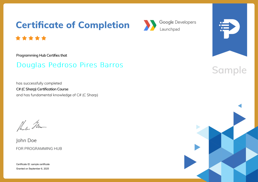 Olá! Me chamo Douglas e sou um desenvolvedor em formação. No momento estou cursando o Certificado Profissional de Desenvolvedor de Software Full Stack da IBM . Fique de olho em meu portfólio! Eu sempre o atualizo quando crio novos projetos e obtenho novas skills e certificações.
